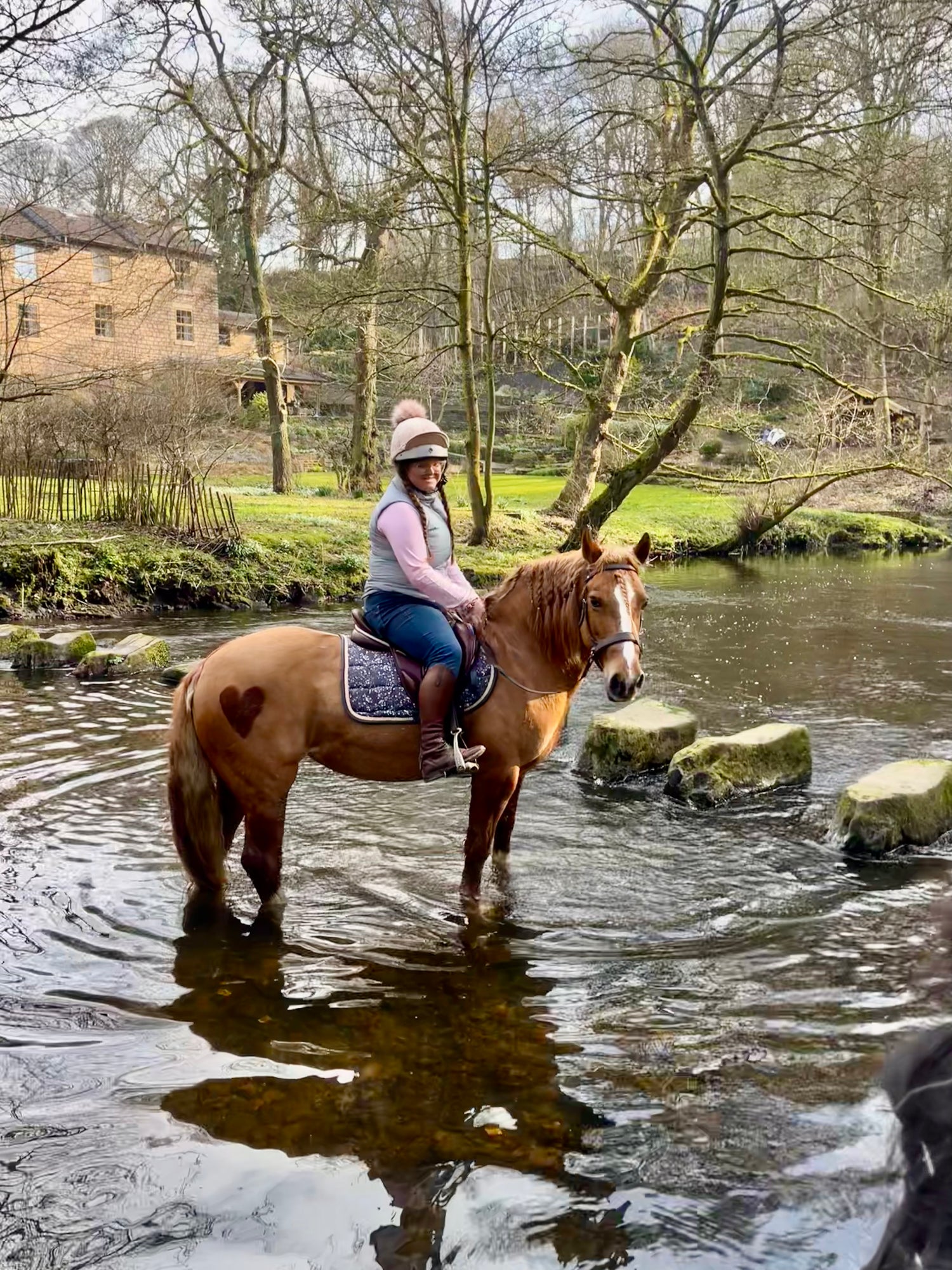 Pixie will go anywhere at any pace, stepping back for those more nervous groups and picking up for a good run when needed. She can open any gate and cross any bridge as long as she gets a good wither scratch!